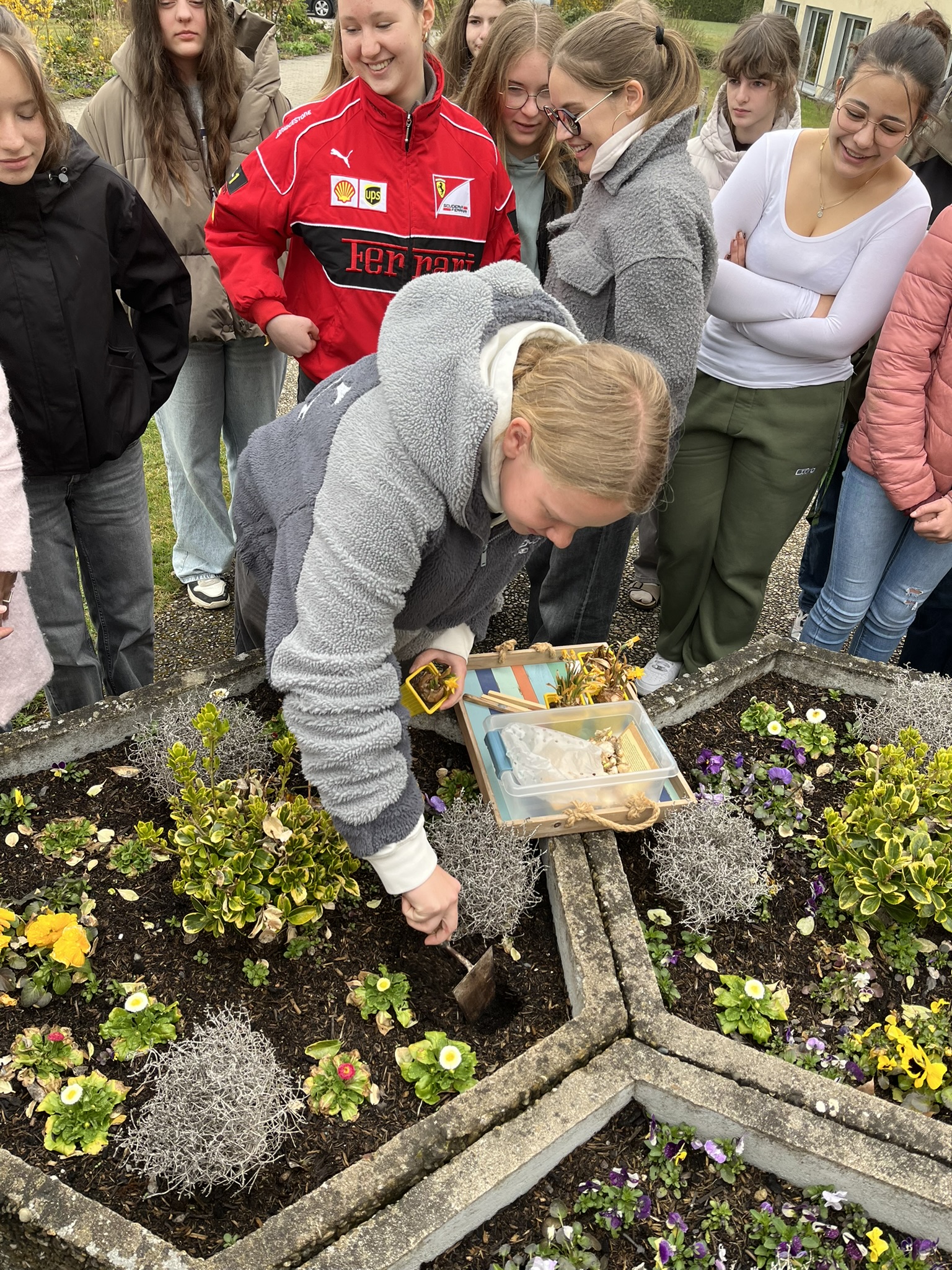 Der evangelische Gottesdienst fand unter der Leitung von Frau Bach in der Turnhalle statt. Hier brachten sich insbesondere die Schülerinnen der Klasse 10 engagiert ein und trugen maßgeblich zur gelungenen Gestaltung der Feier bei. Im Mittelpunkt stand dabei die Botschaft, dass aus etwas Kleinem etwas ganz Großes wachsen kann – anschaulich verdeutlicht am Beispiel einer Blumenzwiebel. Sie wurde als Symbol für das Senfkorn gewählt, von dem Jesus in der Bibel als Vergleich zum Reich Gottes spricht. Die musikalische Begleitung wurde von der Schülerin Marie Trautmann, Klasse 9, übernommen, wofür wir uns ebenfalls herzlich bedanken.
